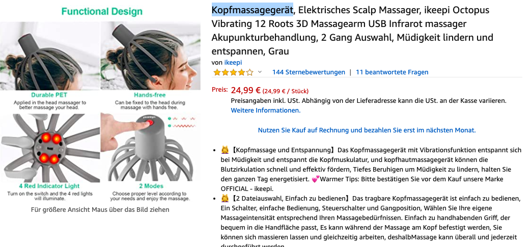 Werd mir die Sachen heute mal besorgen. Und mal eine Technik für Kopfmassage überlegen.