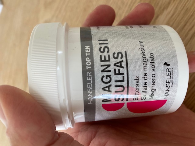 Hab mir Magnesium Sulfat gekauft (Bittersalz), siehe Fotos im Anhang.