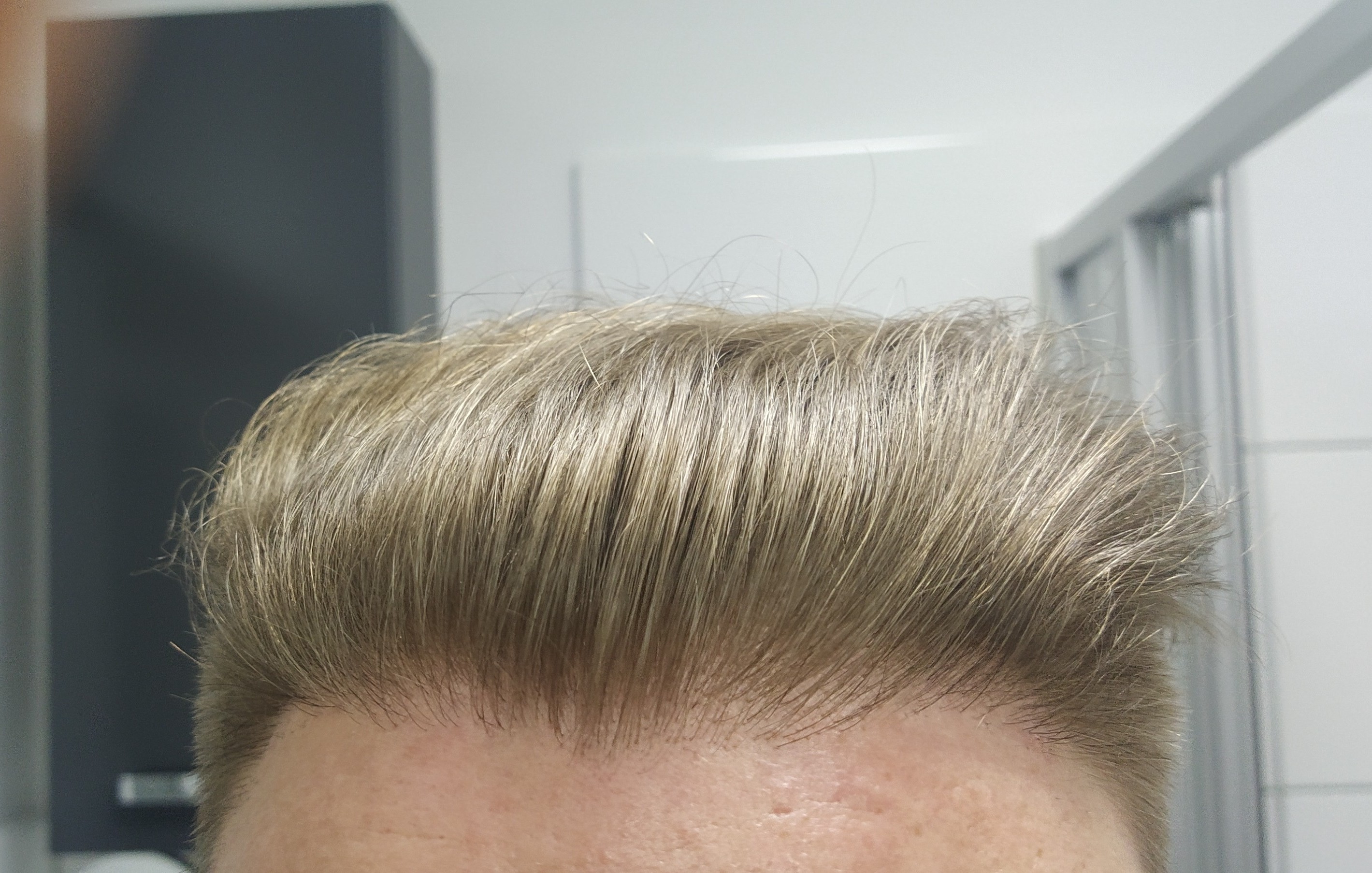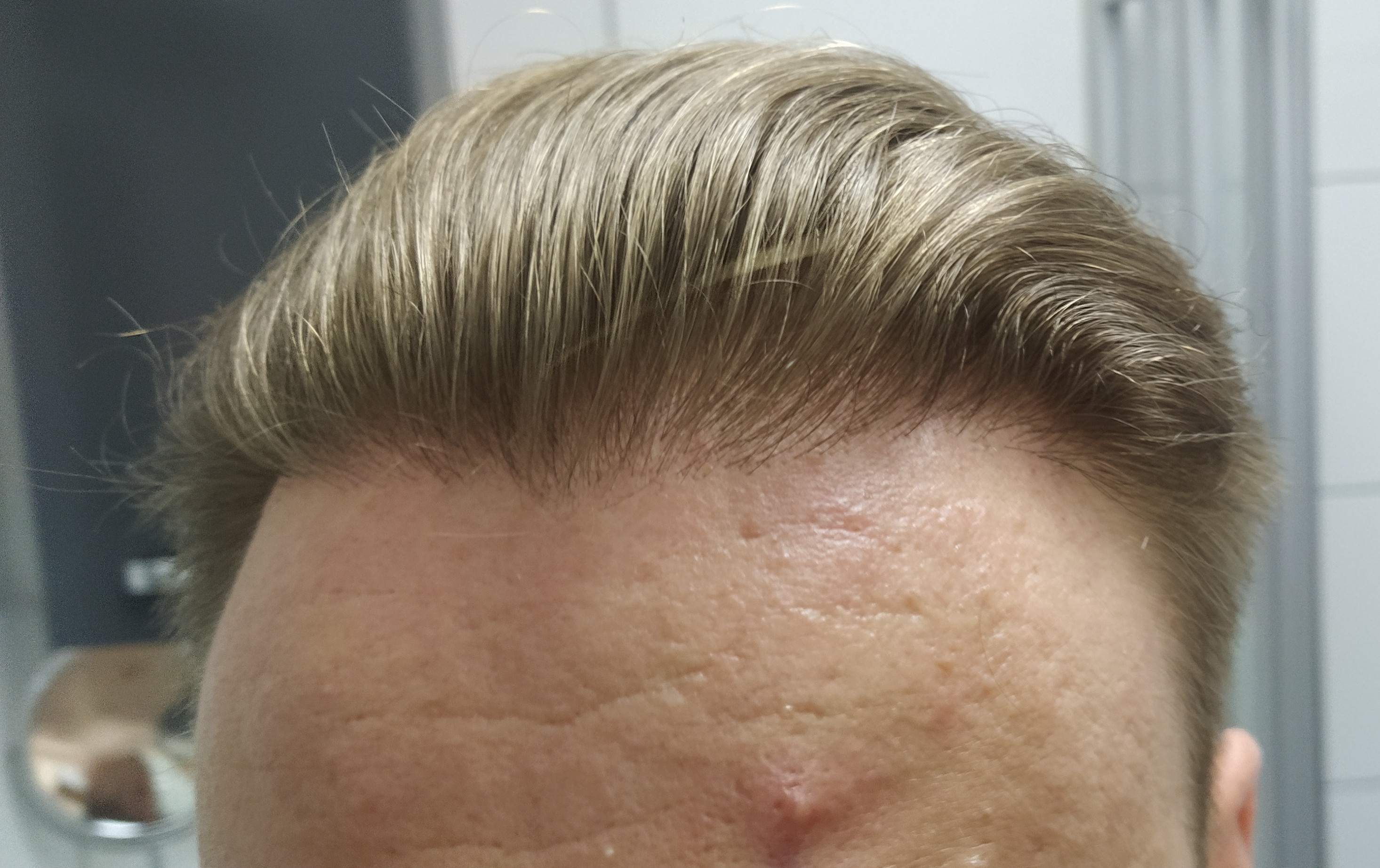 Das ist eine sehr schöne, wirklich natürlich weich rekonstruierte Haarlinie. Kein Mensch würde auf die Idee kommen, dass die linke Seite lichter sein soll.