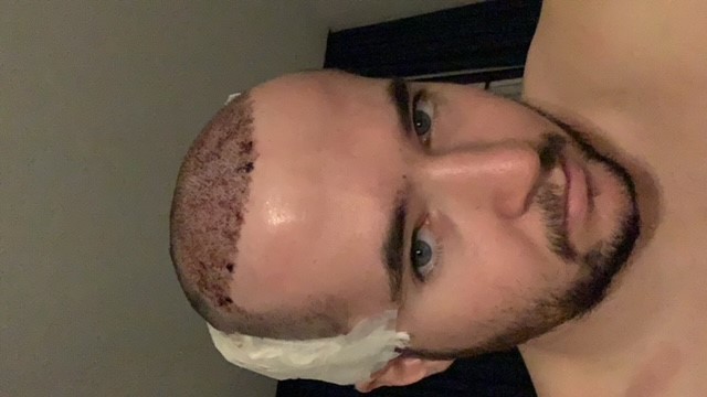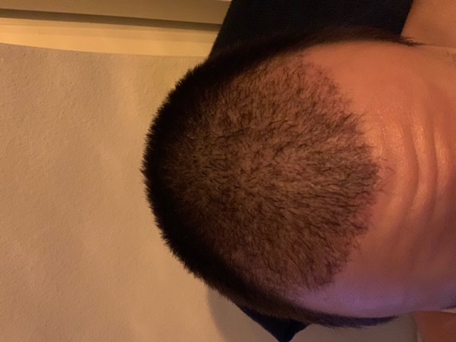 2 Monate nach der OP. In der Mitte sind die Haare schön bisschen länger. Die Geheimratsecken sind noch nicht so gekommen. Hoffe aber die werden noch kommen. Habe Pickel bekommen auf der Kopfhaut aber durch die schnelle und gute Beratung per whatsapp konnte ich die richtige Creme in der Apotheke kaufen gehen. Bin gespannt wie es im nächste Monat ausschauen wird.
