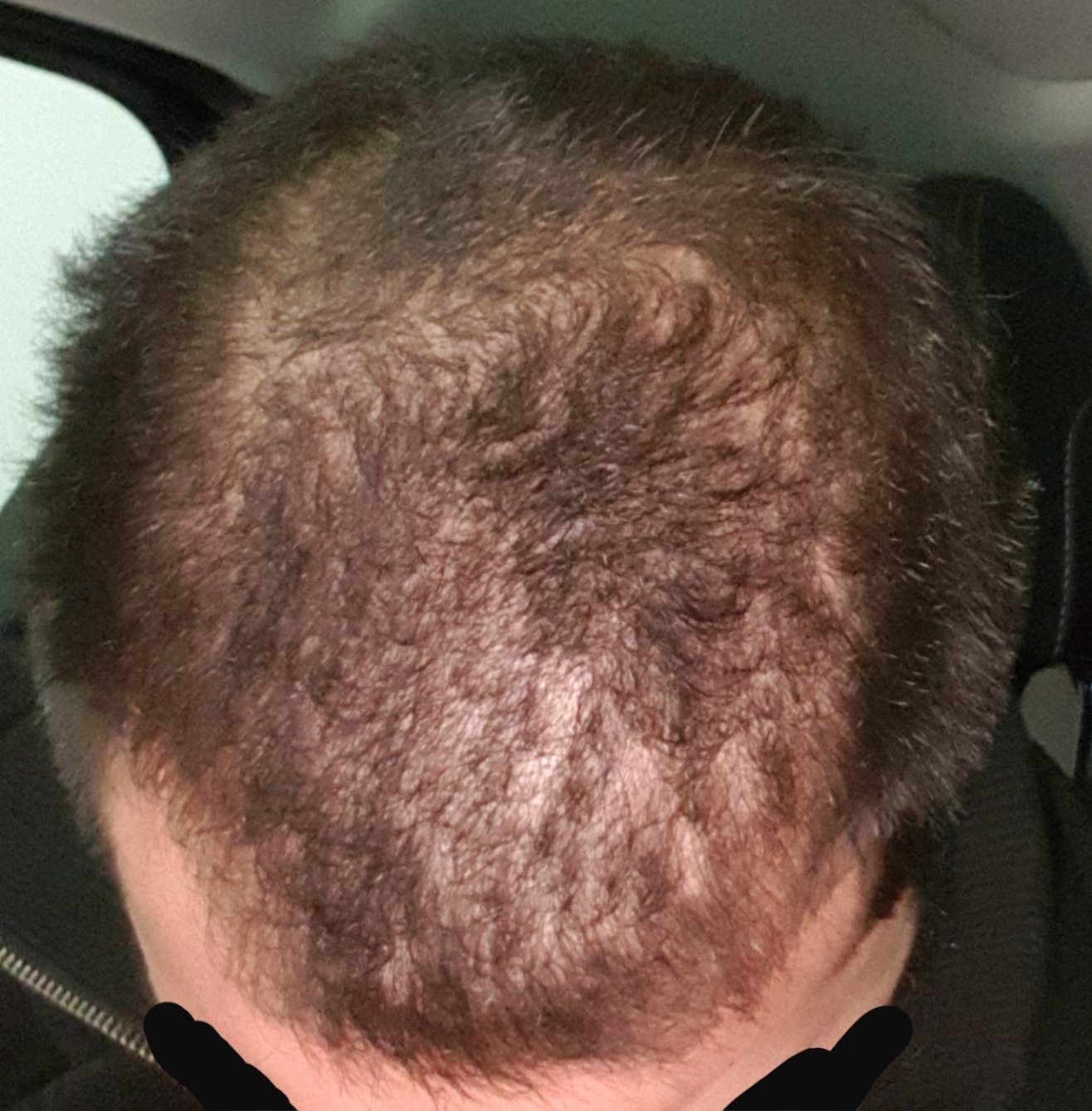 vom 11.12.2020 ca. 4 Monate nach dem Absetzen 3 cm länge. (vor Glatze)