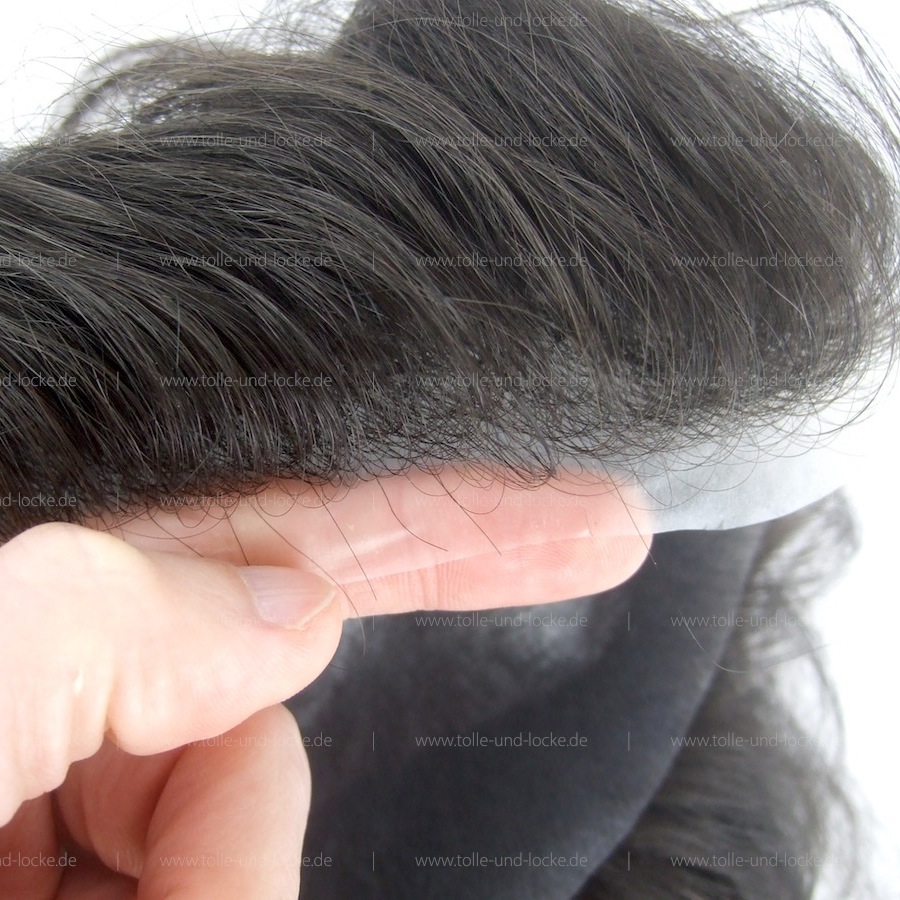 Deutlich wird der natürlichere Haaransatz gegenüber all den üblichen Standardhaarteilen mit voller, üppiger Haardichte.