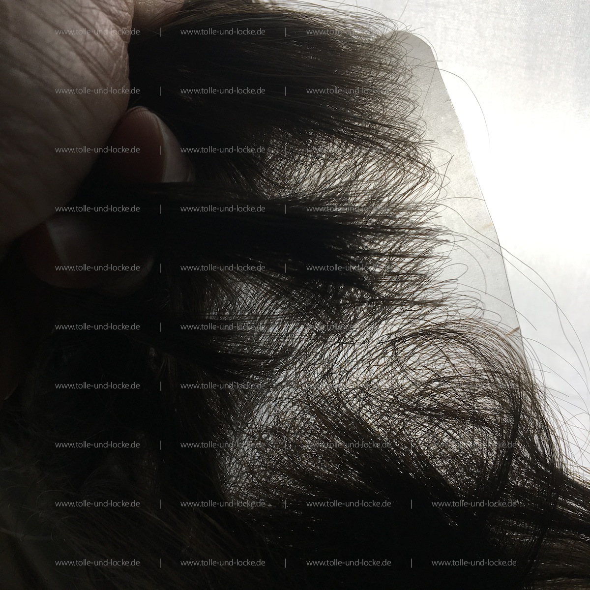 Wenn das überschüssige Folienmaterial entsprechend dicht an der Haarlinie und vor allem unregelmäßig getrimmt wird, ist das Trägermaterial quasi unerkennbar.