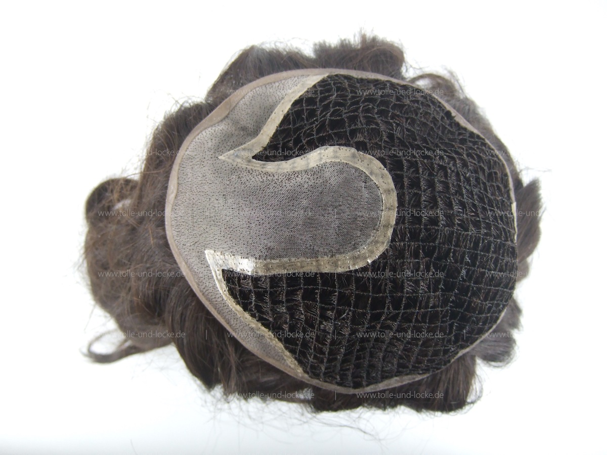 Swiss Lace + extra Mono. Etwas von der Front nach hinten versetzt. Solch ein Base Design hat für (sehr) aktive Freizeitsportler Vorteile hinsichtich Verklebung & Co. Ohne auf die Vorzüge von Netz zu verzichten.