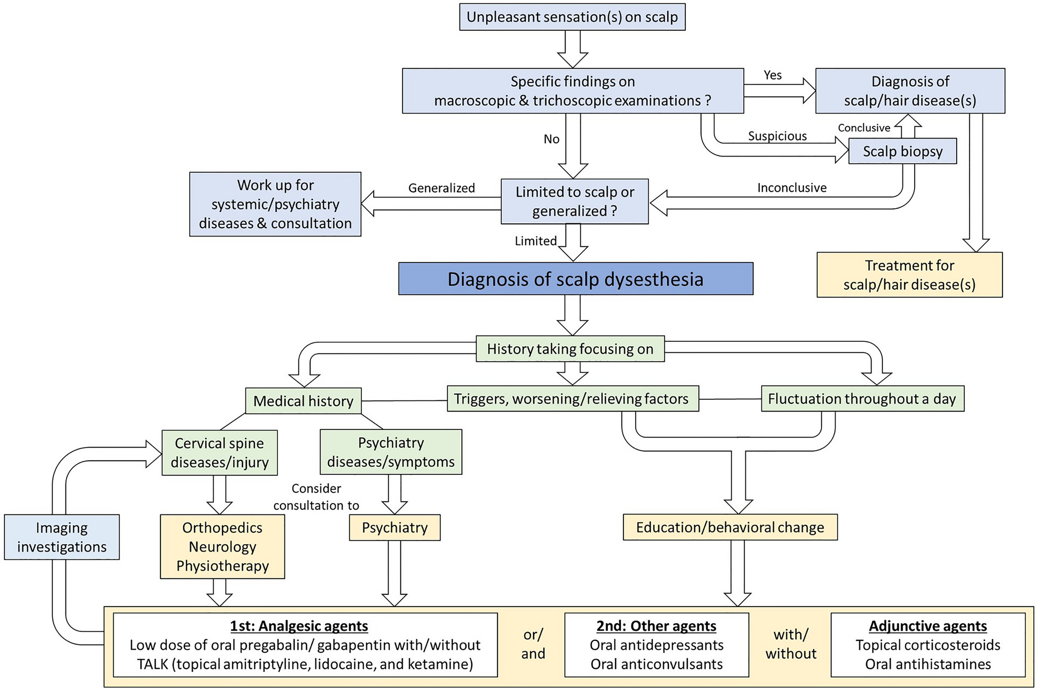 Ist zwar unbefriedend, aber wenn mal die Glatze da ist, gibts auch keine Trichodynie mehr, da die Wurzel 'zerstört' ist.