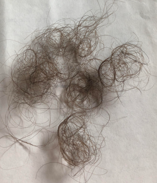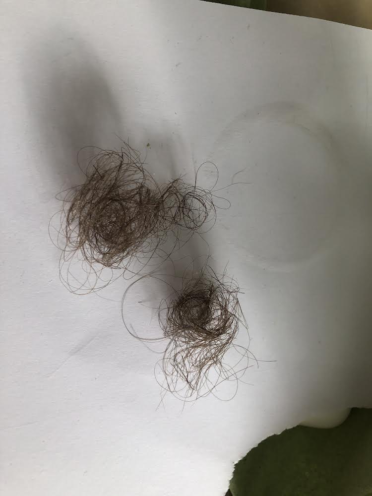 Bei den ausgefallenen Haaren auf dem Foto, kann man schlecht schätzen, wieviel das genau sind, da du ja lange und vor allem dickes, lockiges Haar hast.