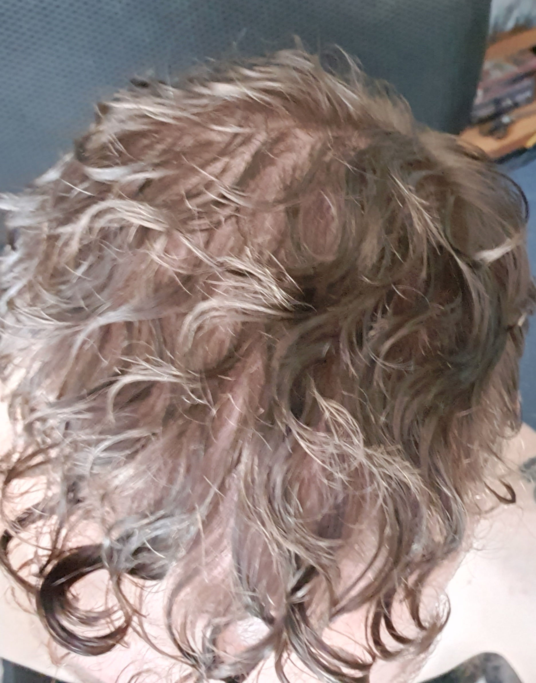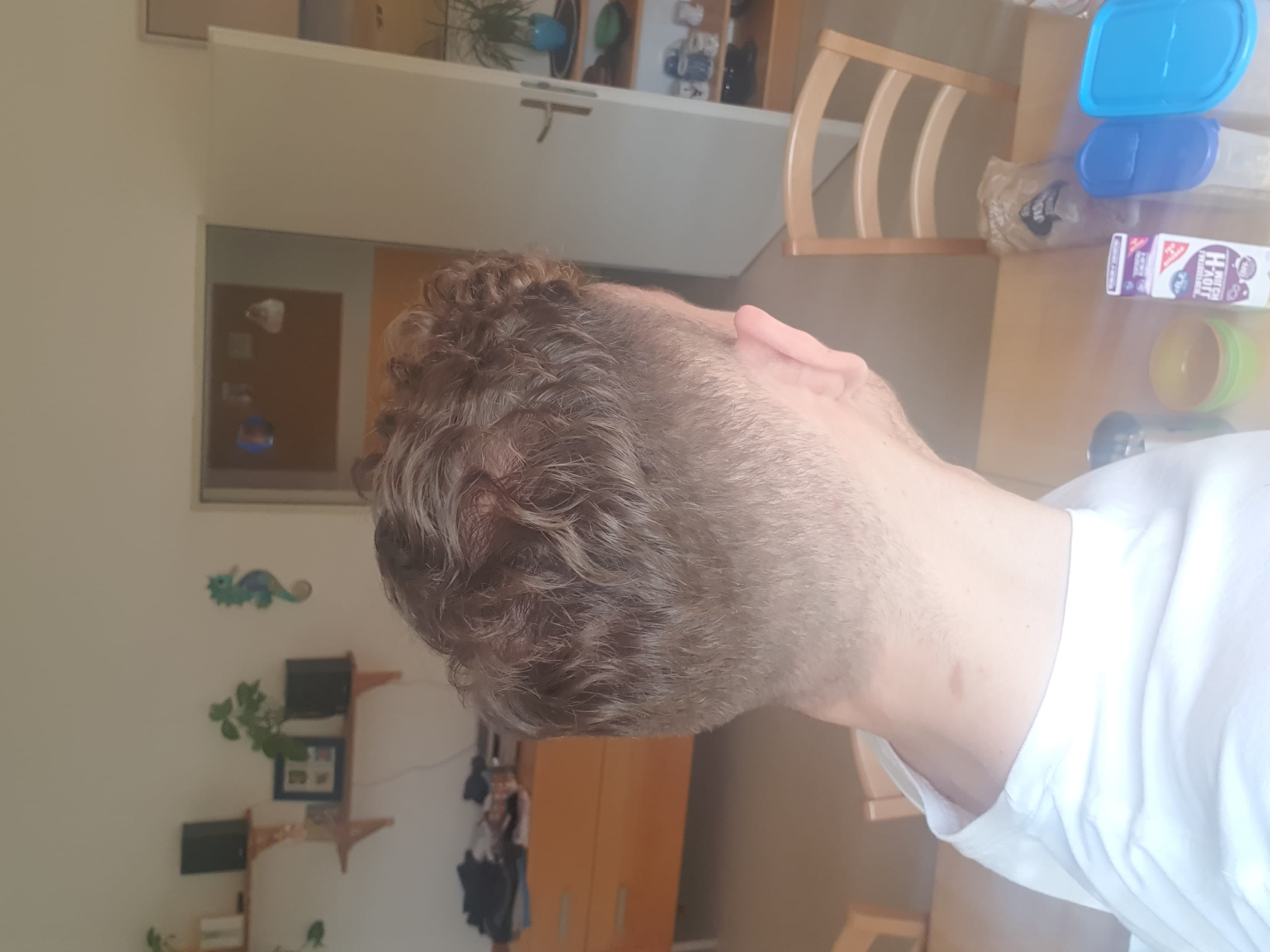 an zwei Stellen am Hinterkopf sieht man meine Kopfhaut durchschimmern. Einmal bei meinem Wirbel und auf selber Höhe auch rechts auf dem Bild. Liegt das einfach an meinen Locken oder sieht das schon wie eine beginnende Glatze aus?