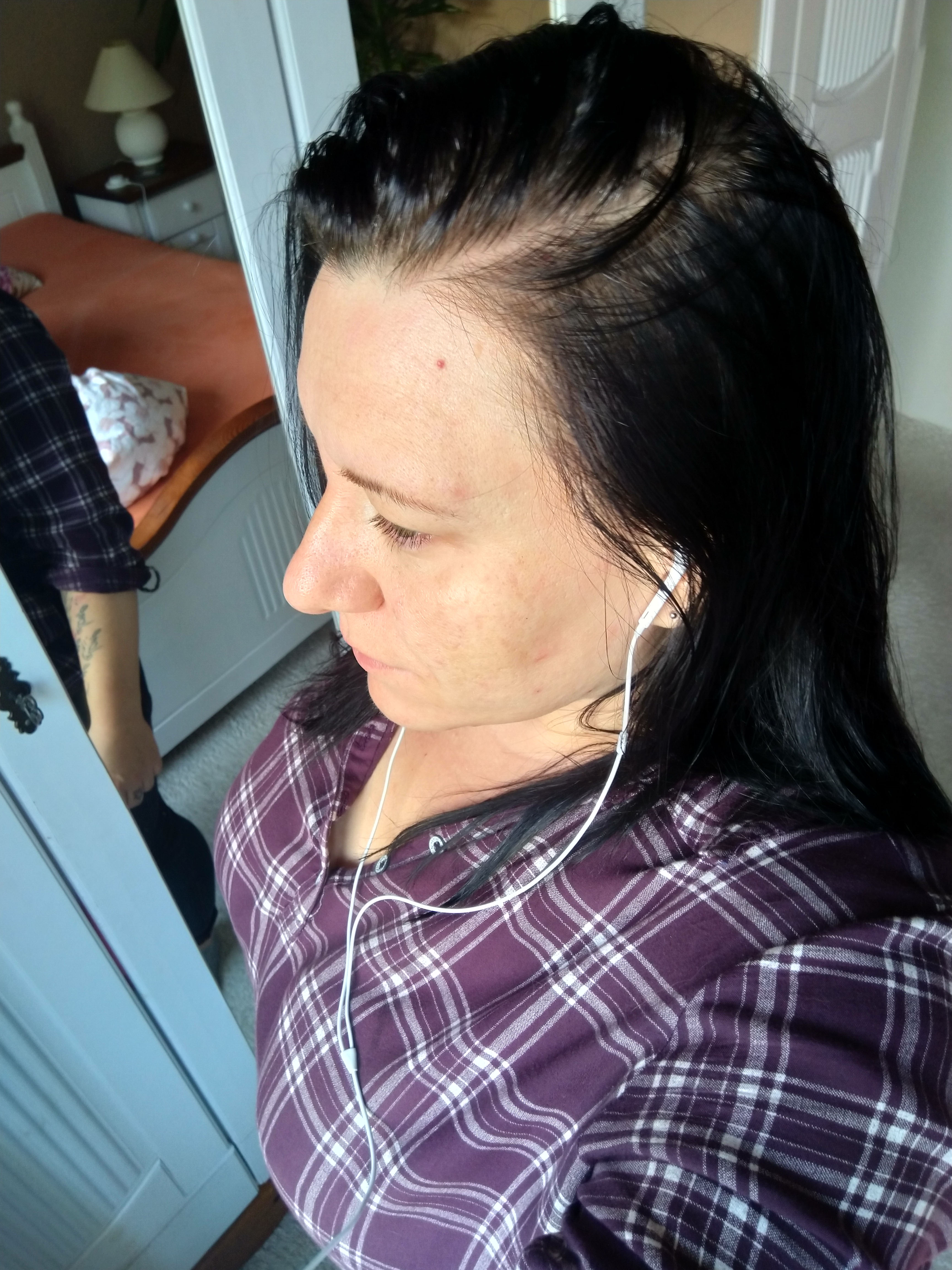 5. Bild.. überall scheinen die Haare dünn zu sein, egal wo ich die Haare anhebe. (sorry unscharf) Ich hoffe, dass es okay ist, so viele Bilder zu posten