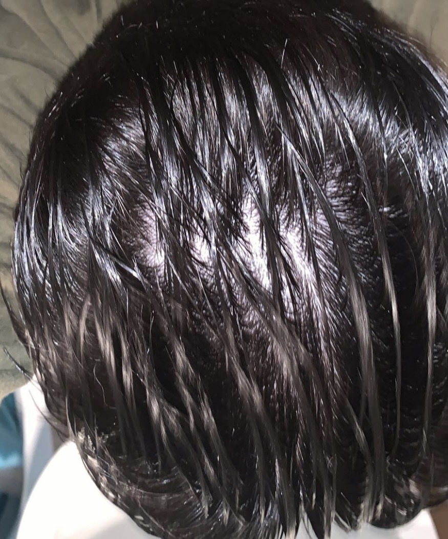 Front ist relativ stabil, bei dem markierten Bereich frage ich mich ob es neuwuchs ist oder miniaturisierte Haare.