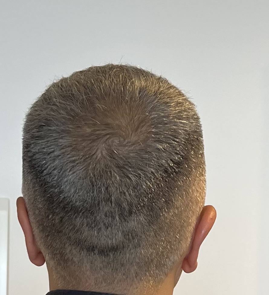 Tonsur sieht mMn etwas dichter aus als zu Behandlungsbeginn, wobei es auch an der Belichtung liegen kann.