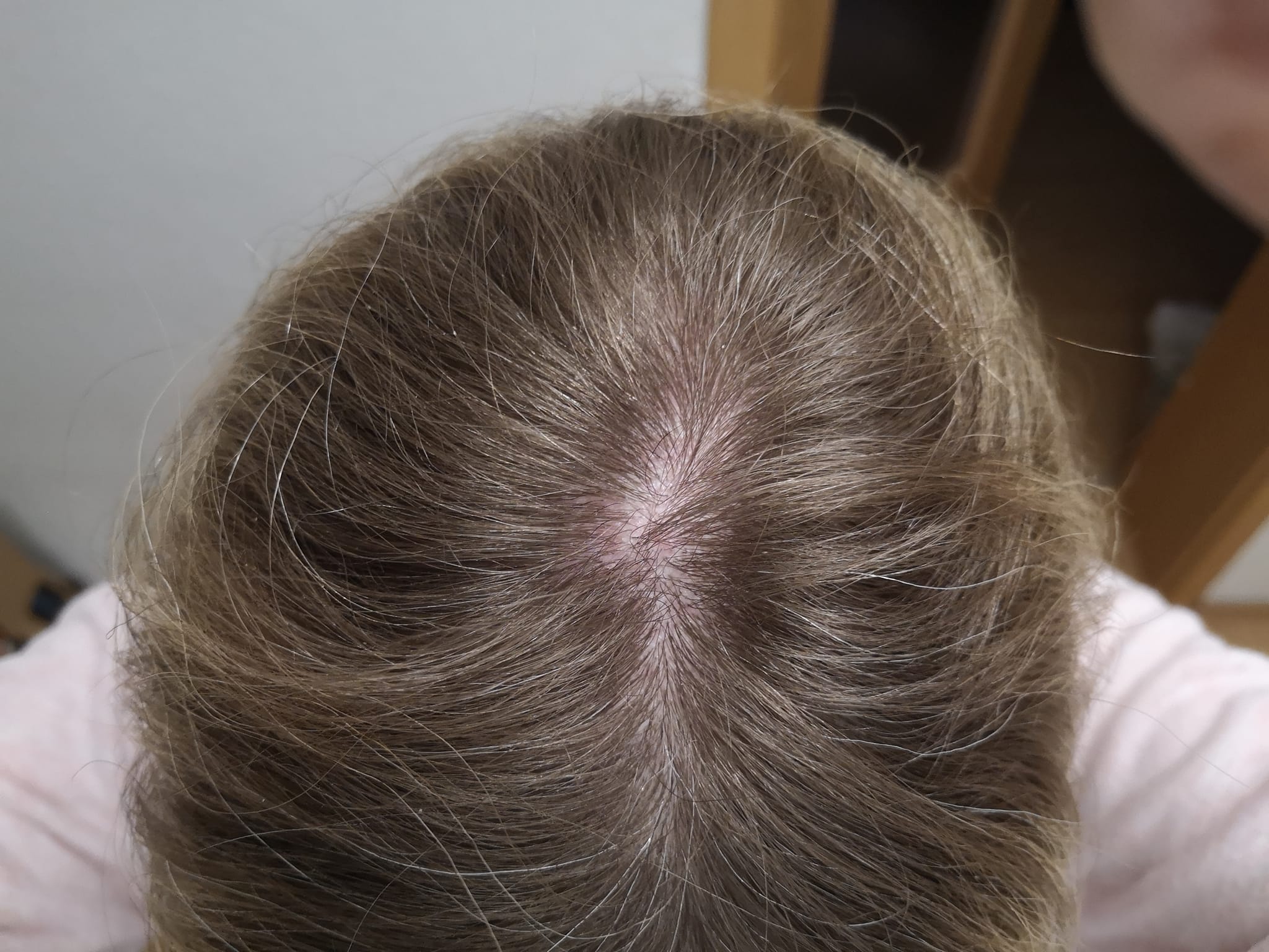 Ich bin weiblich, 30 jahre und leide seit 9 jahren an diffusem Haarausfall. Anhand von dem Bild könnt Ihr sehen, das mein scheitelbereich, vorallem am Hinterkopf schon breiter wird. Ich verliere vorallem an den seiten die Haare (rechts stärker als links). Hinten habe ich noch fülligere haare.