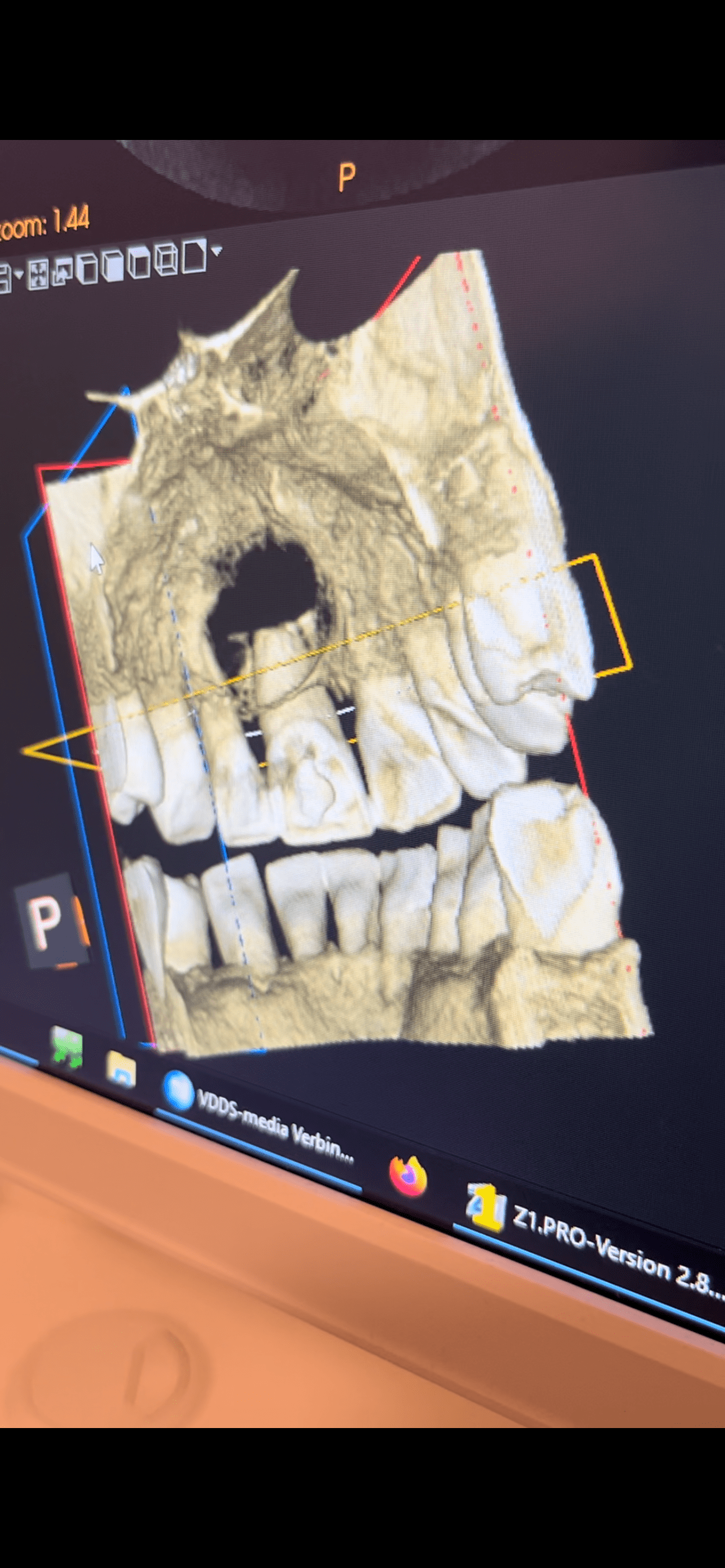 Ps. meine zyste war etwas kleiner und war, obwohl die zähne in ordnung waren, eine entzündung des kieferknochens, die zwischen 2 zähnen sich ausdehnte und 1 wurzel abtötete und die andere schwächte/verdrängte und einen zahn schief stellte. der knochen ist wieder nachgewachsen.. war aber nicht durchlöchert sondern nur ein teil herausgenommen..(viel weniger als bei dir).