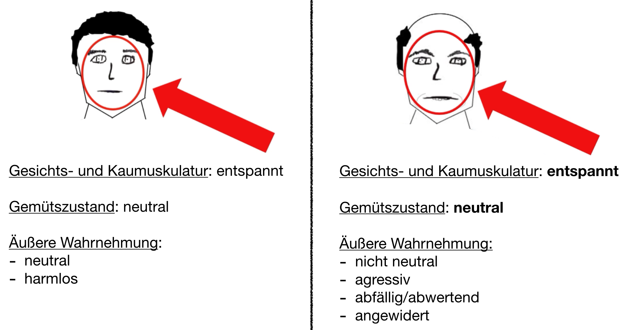 Durch zwischenmenschliche mimische Interaktion werden Menschen von Geburt an darauf konditioniert, ihre Gesichtszüge unter Kontrolle zu haben, um nicht unerwünschte/falsche Interpretationen und damit verbundene Reaktionen ihrer Mitmenschen zu provozieren, die sich kurz- oder langfristig, direkt oder indirekt nachteilig auf ihr Leben auswirken könnten. Die Grundlage für diese Konditionierung ist die im menschlichen Verstand verankerte bzw. gesellschaftlich definierte Assoziation von Emotion und Gesichtsausdruck. Jeder Emotion wird ein entsprechender Gesichtsausdruck zugeordnet. Es ist eine weitverbreitete Annahme, dass die Gesichtszüge (Mimik) eines Menschen grundsätzlich und jederzeit seinen Gemütszustand repräsentieren, da jeder über eine verstellbare Mimik verfügt. Das beutet zum Beispiel, dass, wenn jemand seine Gesichtsmuskeln entspannt, sein Gesicht und damit er/sie als Person dann auch einen entspannten oder neutralen Eindruck auf andere Menschen macht.