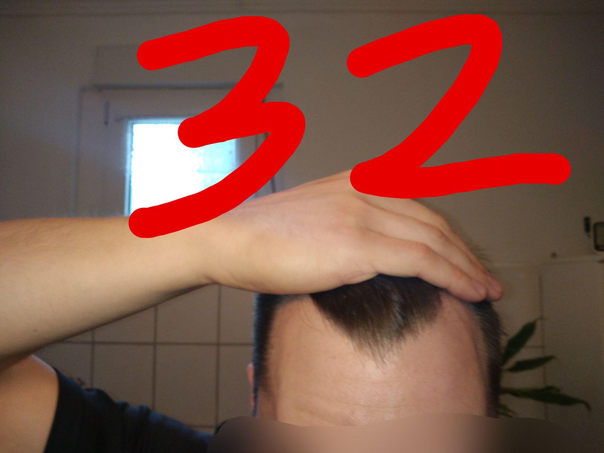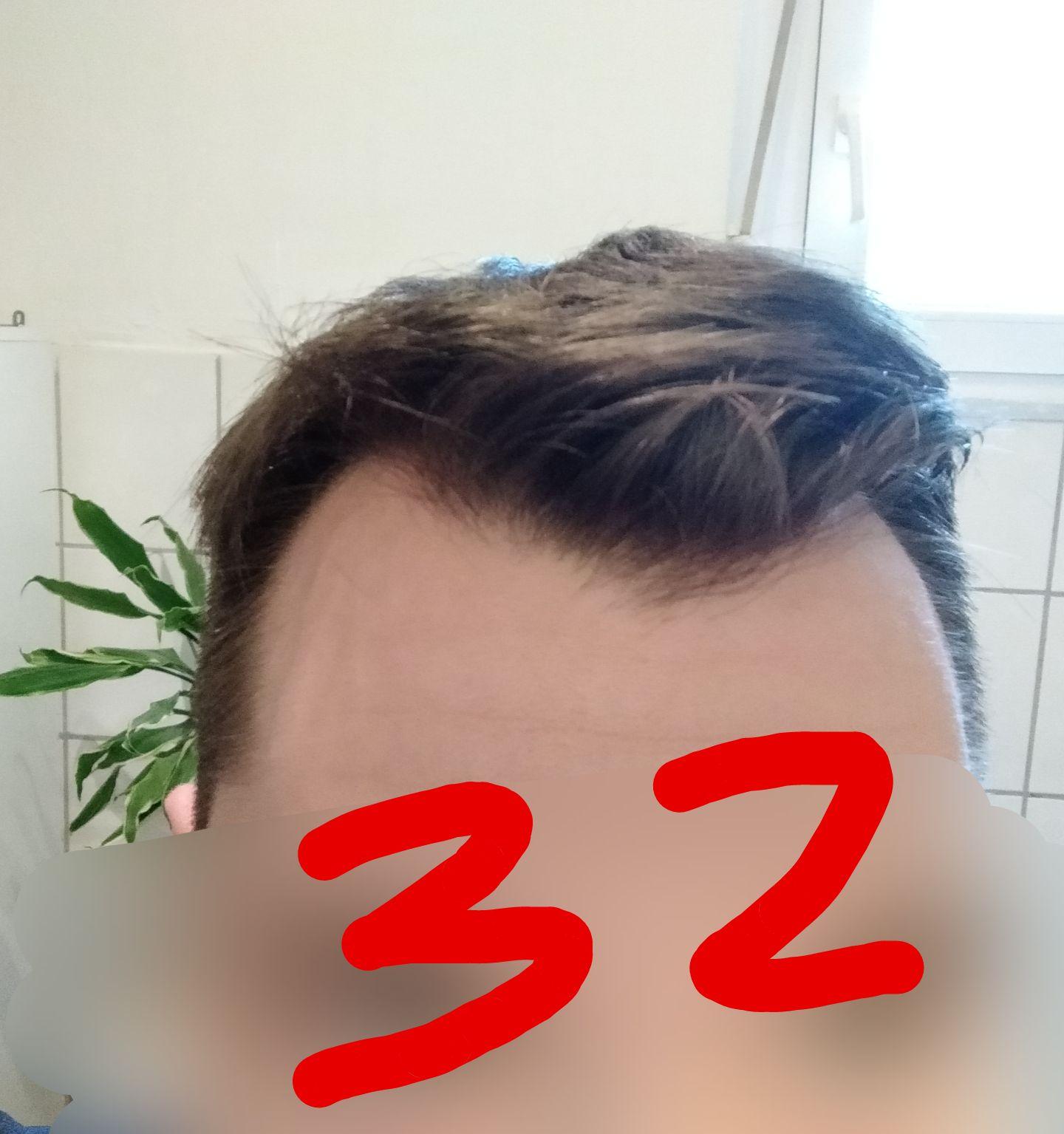 Für 32 Jahre ist der Status noch ordentlich, vor Allem wundert mich es das sich 15 Jahre lang an deiner Haarlinie nicht viel negativ verändert hat, du hast sogar immernoch einen leichten "Witwenspitz", der wäre bei agressiver AGA definitiv vor Jahren schon weggebrutzelt.