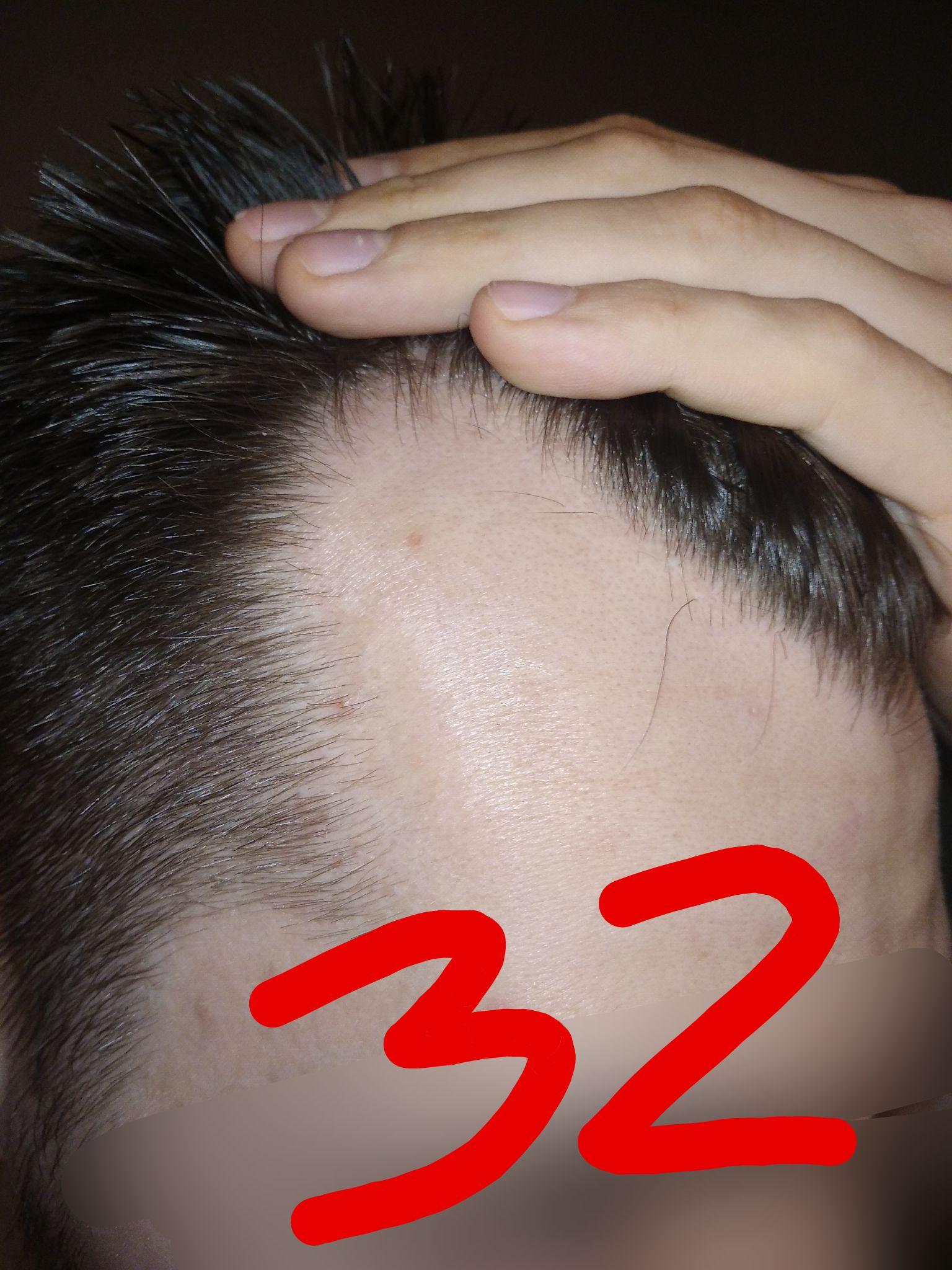 Für 32 Jahre ohne Behandlung ist der Staus okay. Klar vorfallen im Bereich der Front fehlt einiges aber die Tonsur dagegen ist noch ganz gut. Wenn es anfängt dich zu stören solltest du beginnen den Status durch eine entsprechende Behandlung mindestens zu halten. Die Front wirst du wahrscheinlich allein durch die üblichen Mittel nicht wieder dicht bekommen, da müsste wenn eine Transplantation her. Ohne Therapie wirds aber wohl eher voranschreiten als zu stagnieren mit 32