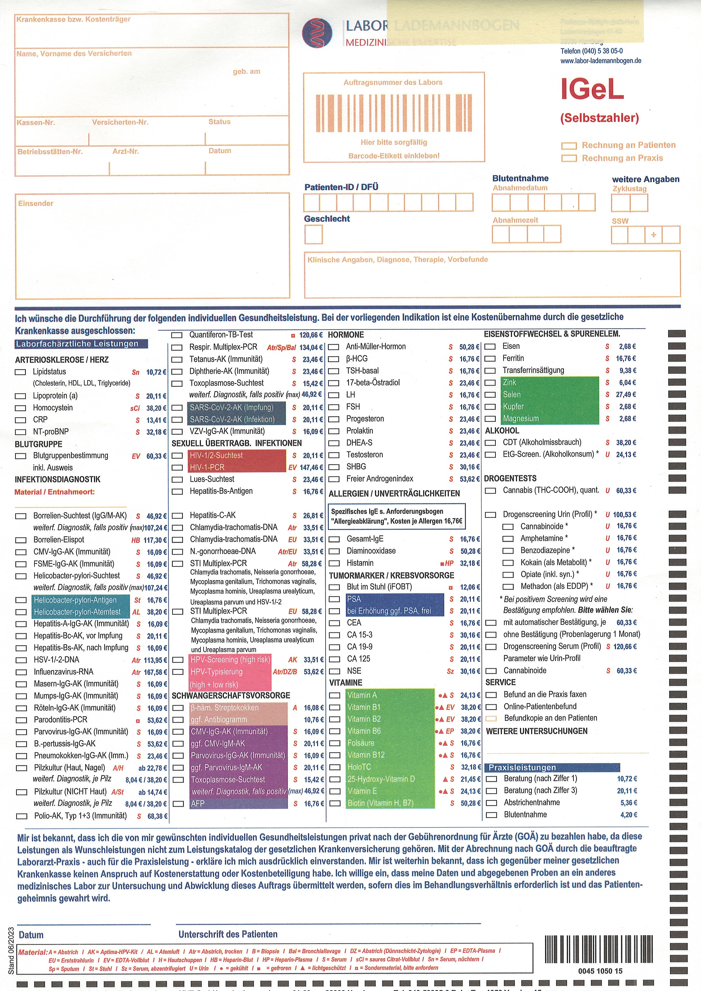 im IGeL Blatt ist weder das eine noch das andere drauf