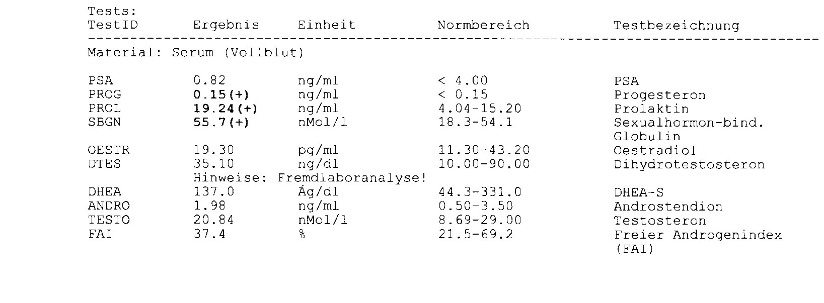 PS.: Labor Lademannbogen in Hamburg kann androstandion-glucuronid nicht bestimmen, und kennt auch kein Fremdlabor, das die Bestimmung durchführen könnte.