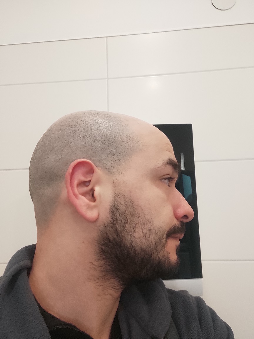 Wenn ich mich rasiere dann sieht das vorne gut aus. Nur hinten ist die Stelle noch kahl, aber wenn man das Bild vom Hinterkopf richtig rein zoomt,