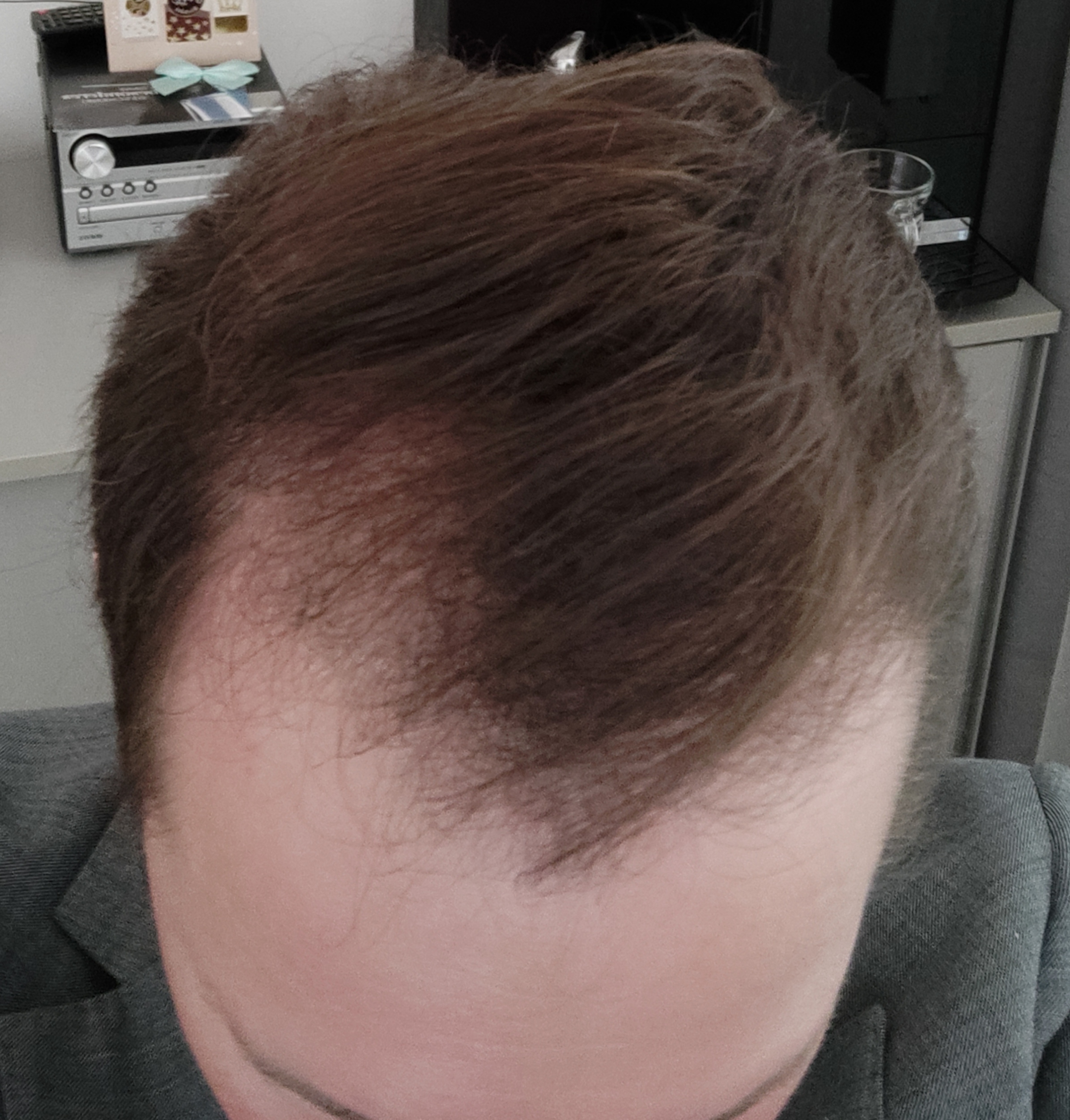 Ich entschied mich also für das Minox und nutz seit 2021 die topische Anwendung laut Packungsbeilage zweimal am Tag. In der ersten Zeit hat sich auch eine Besserung eingestellt. Dann habe ich das Kontrollieren etwas aus den Augen verloren um jetzt festzustellen, dass es wieder schlechter geworden ist.