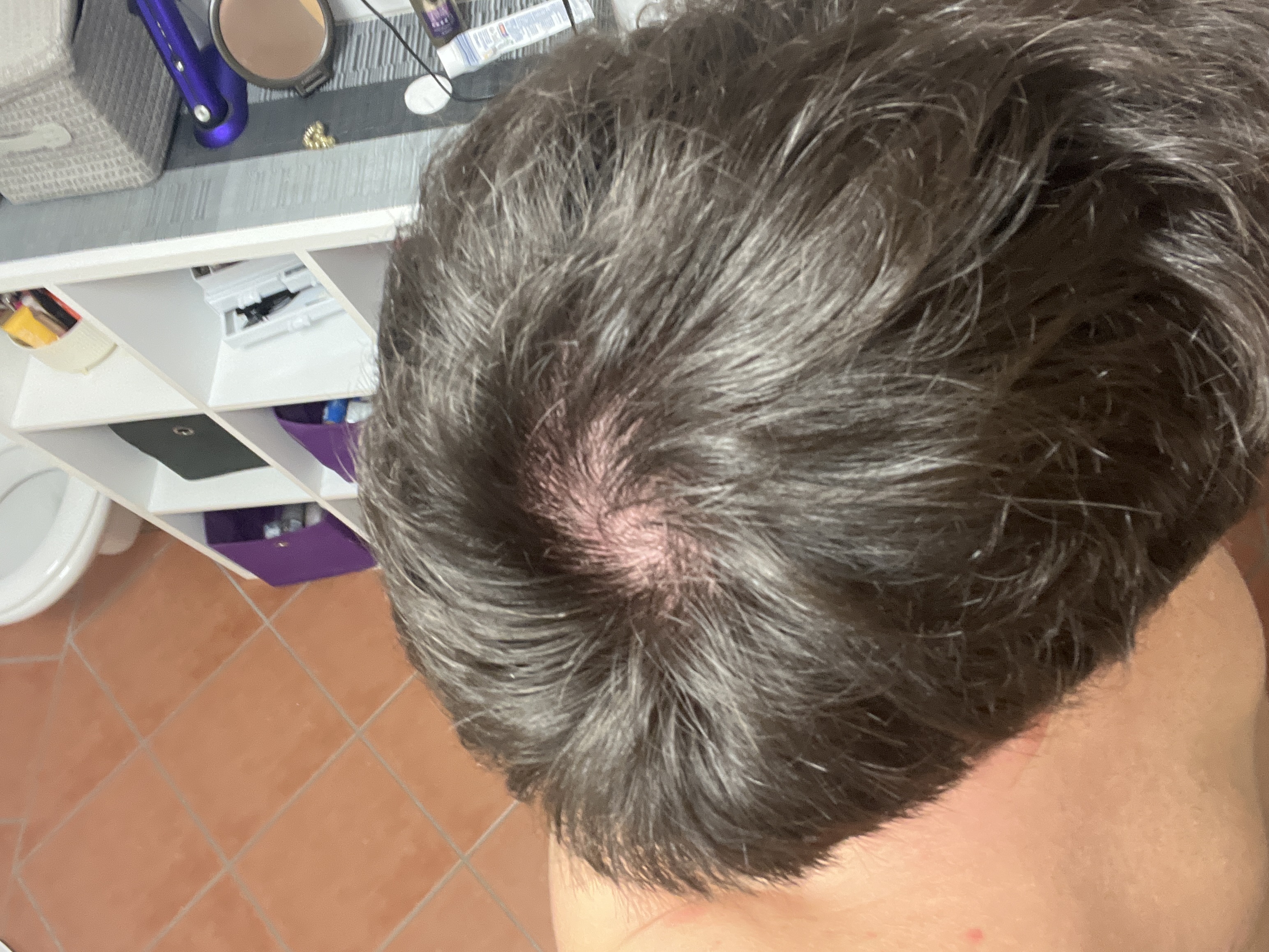 Es sieht für mich noch aus wie nen Normaler Haarwirbel, ich kannte einige die so nen Haarwirbel hatten. Wo mehr Kopfhaut zu sehen war bzw. die waren ums Pubertät alter, wo ich inne Schule war.