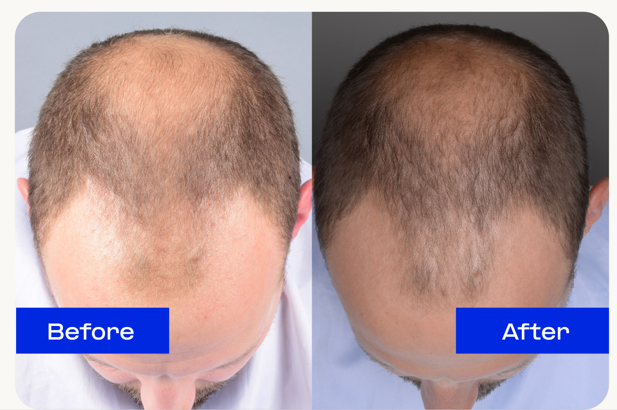 Die Fotos finde ich nicht aussagekräftig. Auf dem ersten Bild sehe ich keinen Unterschied und auf den anderen beiden Bildern sieht es so aus, als wären die Haare, die schon zuvor vorhanden waren, einfach länger, weshalb ich möglichen Neuzuwachs nicht erkennen kann.
