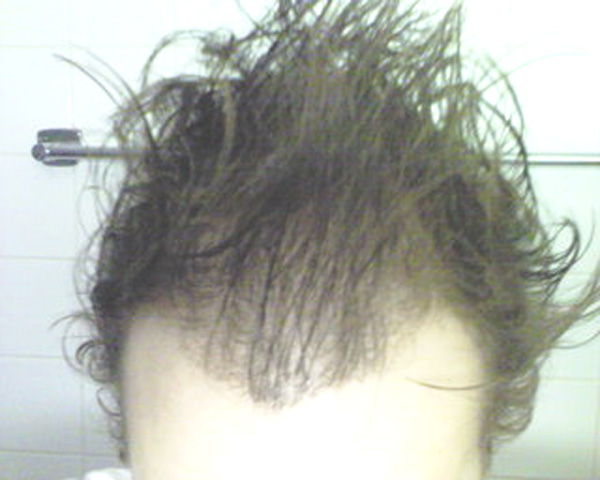 hier ist noch ein VORHER bild. aber , es ist mit blitz gemacht und deswegen sieht es sehr viel dichter aus. ungefähr x2. aber ihr seht, ich hatte da noch haare. eindeutig.
