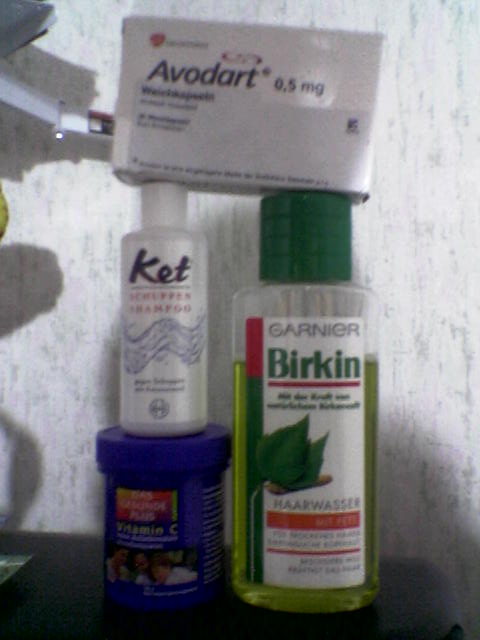 0,5mg Avo(stopped since 2.8.06),NEM, since 16.8.06 1,25mg finasterid, 50ug T4, Rogaine 2%,