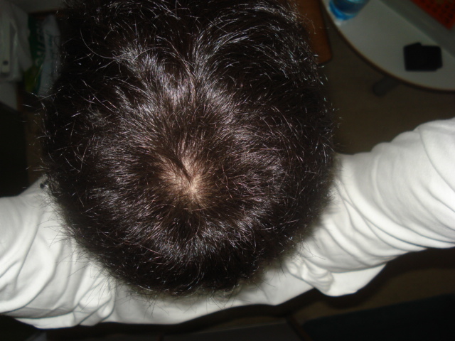 Aber mE beginnt es auch bei dir... (aber, wie gesagt: bis zu einer größeren, auffallenden kahlen Stelle MEINER Ansicht nach mindestens noch 4-5 Jahre)