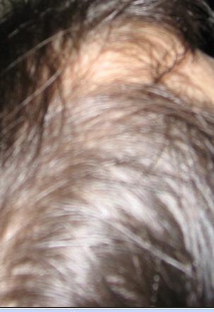 Aber so schlimm ist das REAL ZUM GLÜCK NOCH NICHT !!! wirklich. Hab einfach mal eben die haare naß gemacht , damit ihr mal sieht wo die haare nicht mehr da sind....