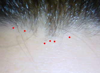 Denkst Du, dass da neue Haare wachsen? Wie soll man das erkennen, wenn Du es mit roten Punkten übermalst?