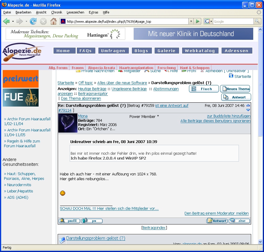Startseite » Off topic » Alles über die Foren-Software » Darstellungsproblem gelöst (?)