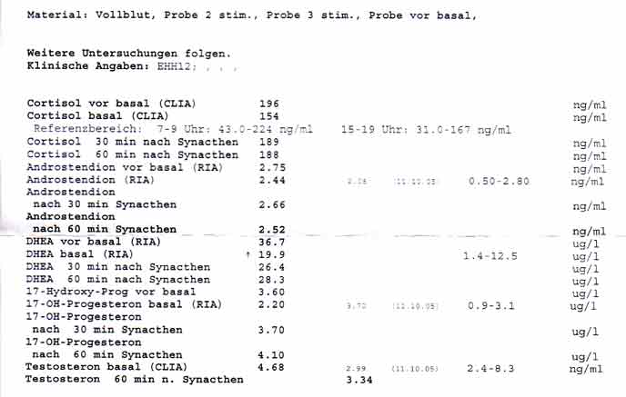 Auch komisch ist dass du fast keinen Cortisolanstieg hast. Von 15,4 auf 18. Spricht also auch für gestörte Cortisolsynthese.