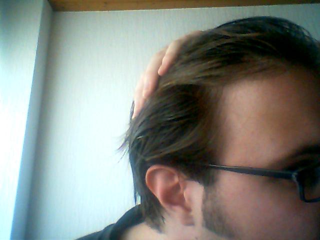Ich trage noch dieselbe Frisur- aber wenn das so weitergeht, kann ich sie im Winter 2008 vermutlich abschreiben. Und dabei hänge ich so an meinem "mittellangen Herrenhaarschnitt". Ich habe ohnehin seit Geburt eine hohe Stirn, aber mit den längeren, teils ins Gesicht fallenden Haaren sah das immer akzeptabel bis gut aus. Je nachdem, wie die Haare fallen, bin ich inzwischen nicht mehr wirklich mit dem "Gesamteindruck" zufrieden. So bescheuert das klingen mag, aber das beeinträchtigt meine Stimmung schon enorm. Teilweise über den ganzen Tag.