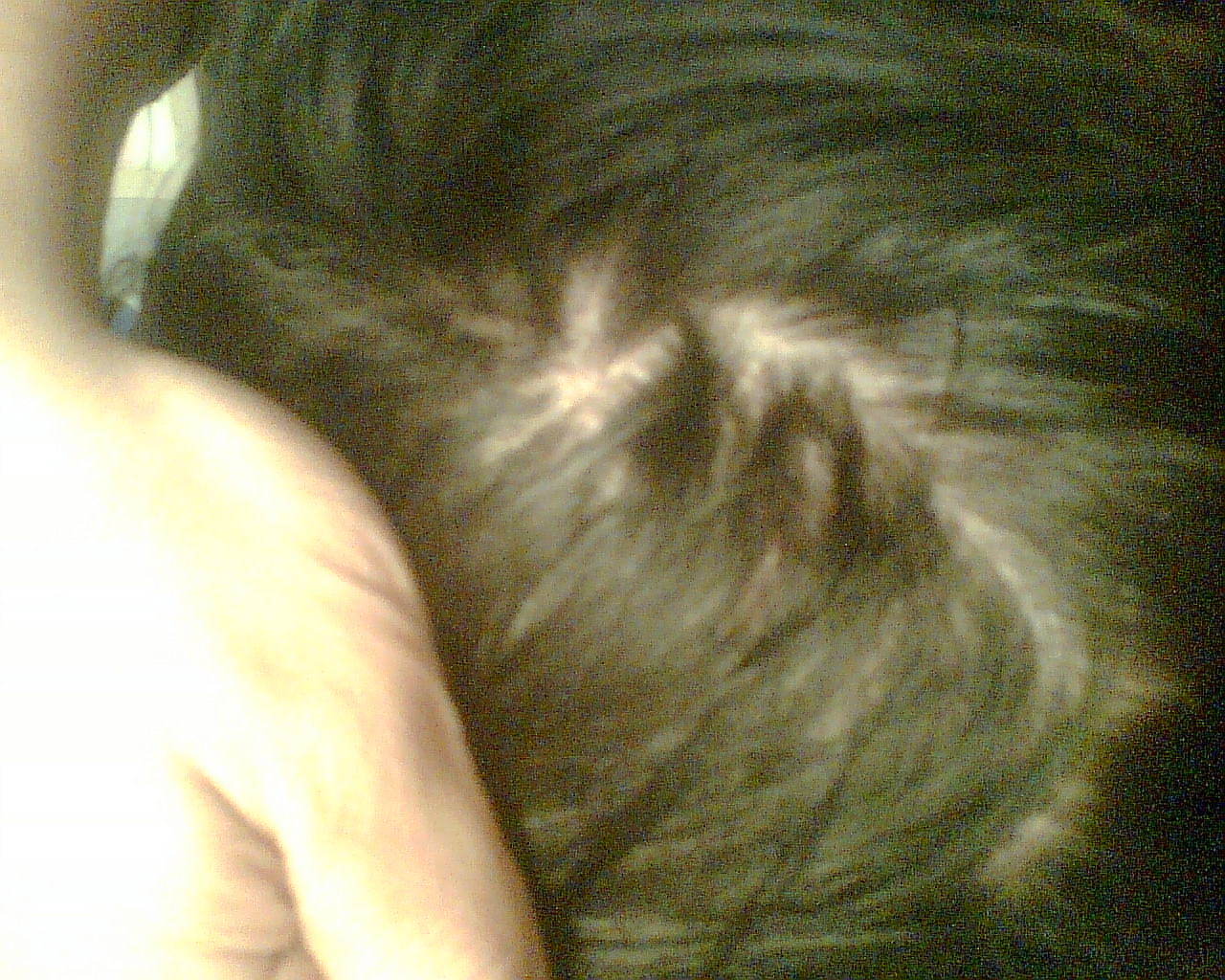 wenn ich den scheitel von meinem bruder (16 jahre kein ha!!!) mit blitz so fotographiere siehts genauso aus...