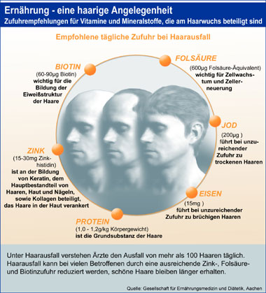 im Anhang heisst es zwar 60-90 ug Biotin , doch die meisten nehmen hier 5-10 mg (am besten gleich morgens). Zink: 15-30 mg (abends - am besten kurz vorm schlafen) - wobei bei HA, eher zu 30 mg geraten wird. Wichtig bei Zink-Einnahme ist ab und zu eine Überprüfung von Eisen- und Kupfer-Status.