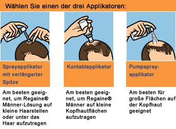 Erst den Sprayapplikator anwenden, solange bis die kahle Fläche groß genug ist, um den Kontaktapplikator zu nehmen. Anschließend kann man den Haaren mit der richtigen Pumpe den Rest geben Very Happy