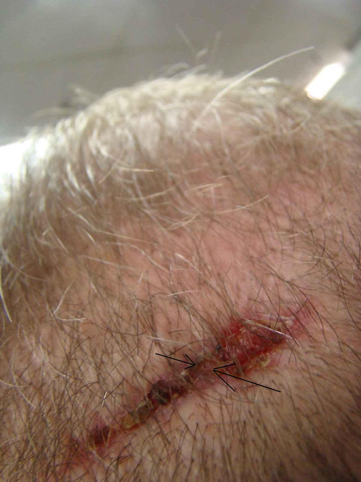 Interresant wäre,ob Jones vorher die Haare gezählt hat.Die Wunde sieht aus,als wäre sie geschrumpft!Sie ist immer noch nicht ganz mit neuen Gewebe überzogen!