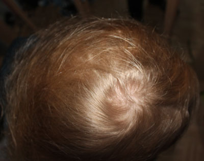 Haartechnisch crasser Erfolg - die linke Ecke ist noch mau, aber Neuwuchs deutlich sichtbar.