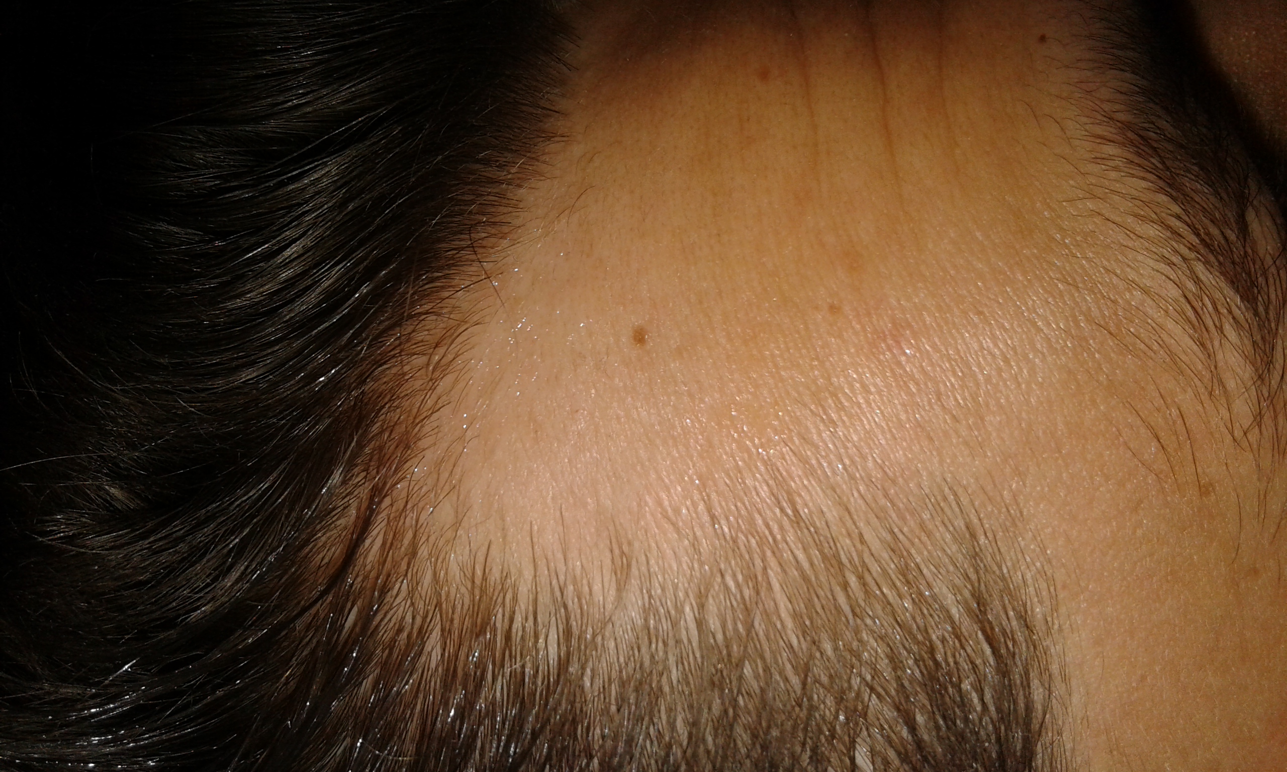 das ist volles haar... es handelt sich nur um eine mature hairline.. wie es nahezu jeder mann und viele frauen auch haben...