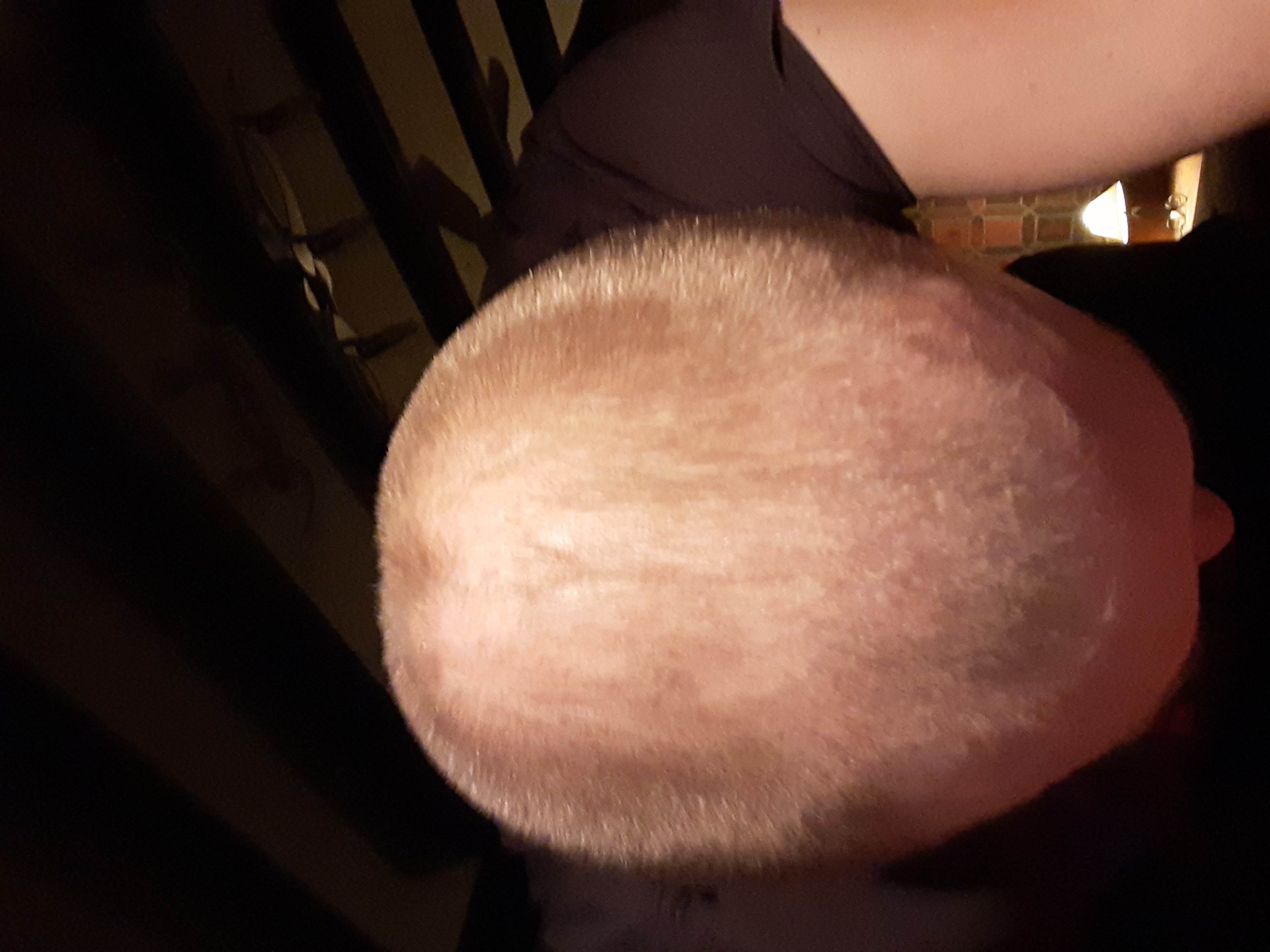 Erstens das. Und zweitens sieht das für mich eher nach einer Verschlechterung des Haarzustands aus. Hast du denn auch den Kranz massiert oder nur den Oberkopf?