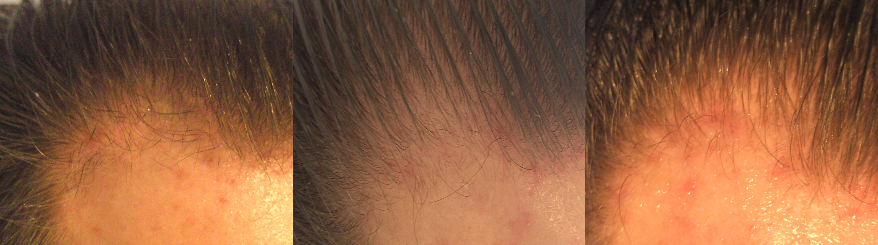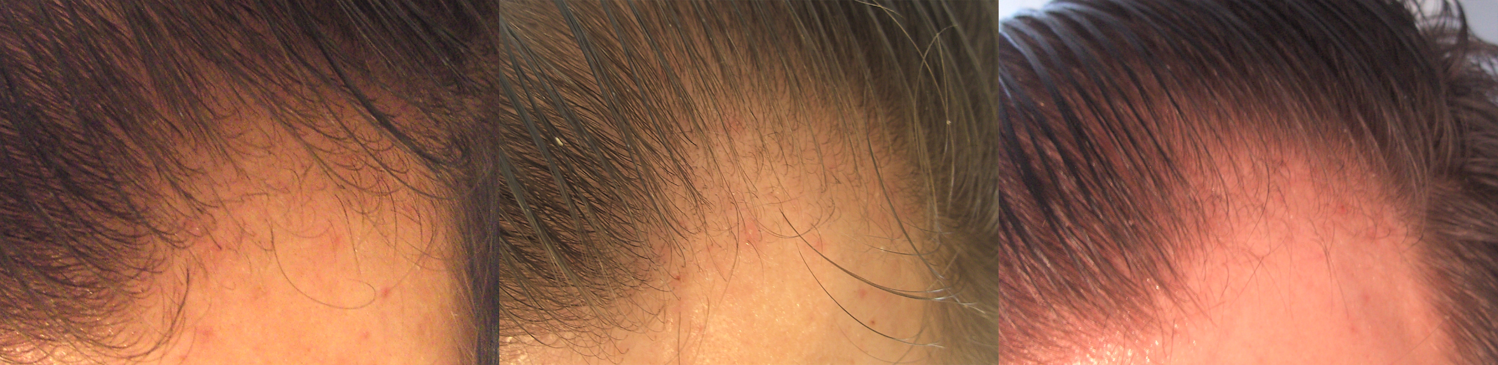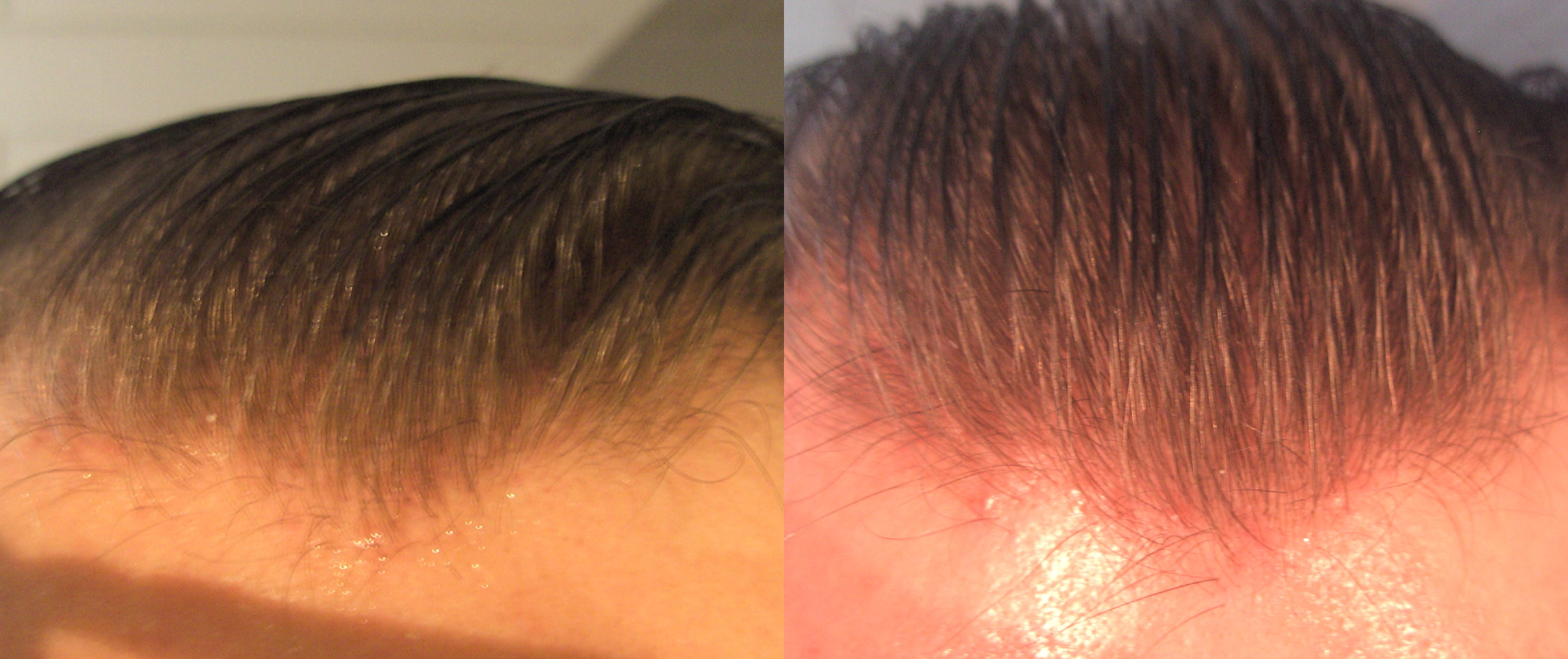 ich kann folgendes festhalten: das überfallartige shedding ist vorbei, es fallen deutlich weniger haare ins waschbecken. aber leider habe ich trotzdem das gefühl, dass die haarlinie in den ghe nach hinten weiterzieht, evtl. zeigt sich aber auch erst jetzt das volle ausmaß des sheddings bevor ich mit cet angefangen habe. vergleicht mal die jetzigen bilder mit denen, die ich schon mal vor monaten hier gepostet habe. allerdings erkennt man auf den jetzigen fotos die alte haarlinie in form von kleinen blonden härchen. mal gucken, ob das was zu bedeuten hat.