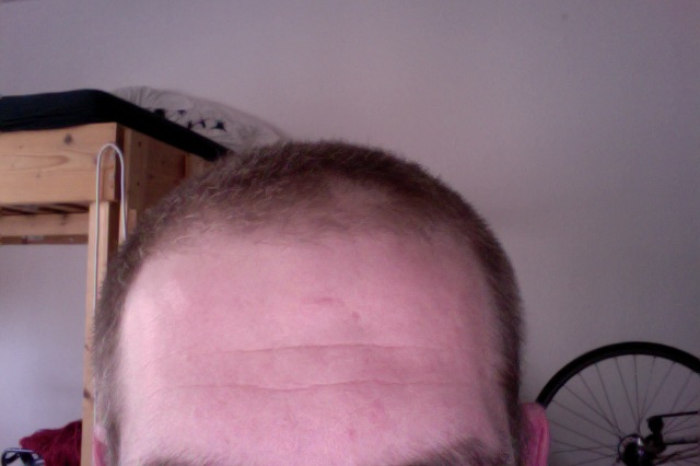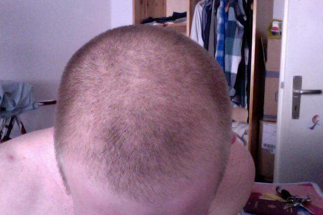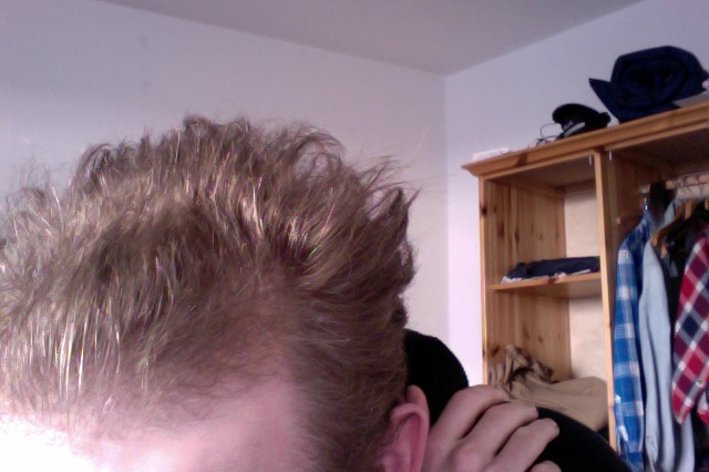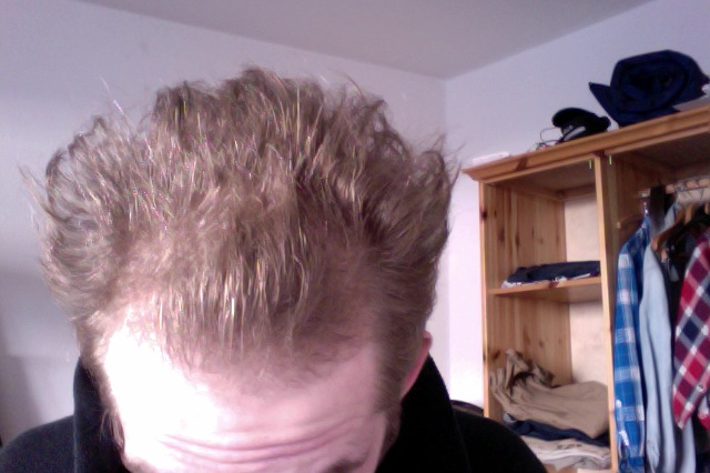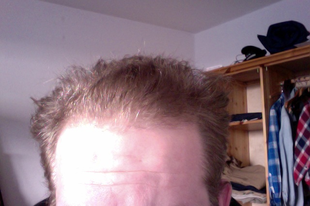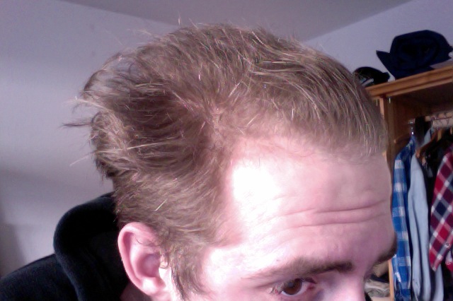 ahja. interessant auch, dass vorne die haare nach links weg wachsen, also nicht starr nach oben wie der rest. sehr verwunderlich, aber denke, dass das die haare sind, die eigtl. nur durch minox gehalten werden.