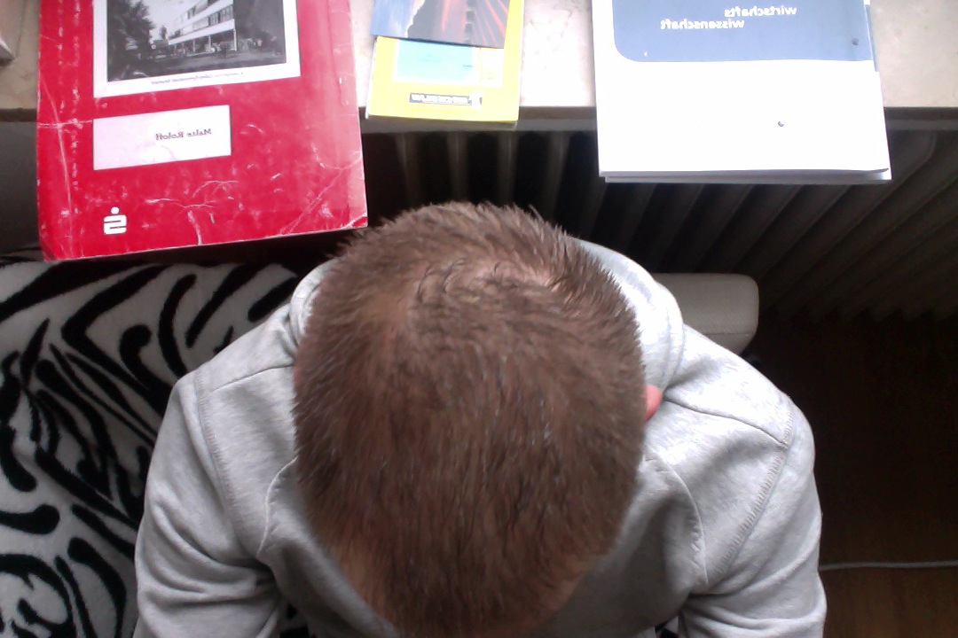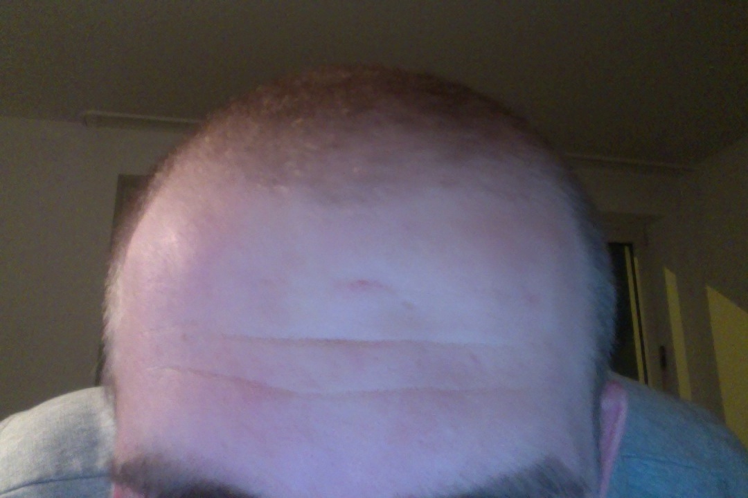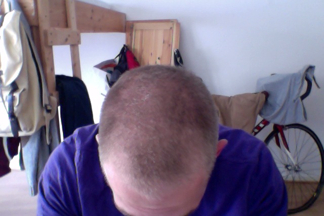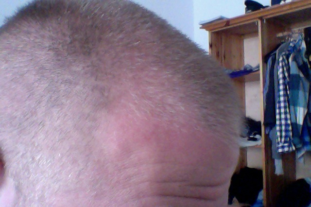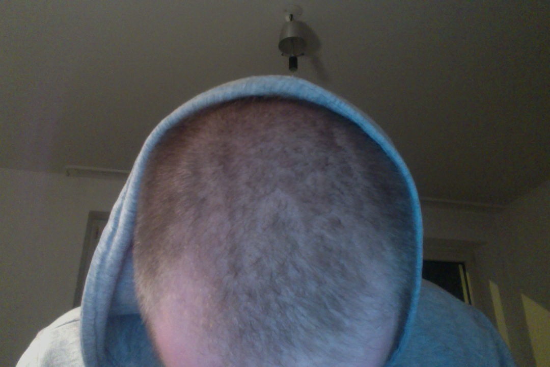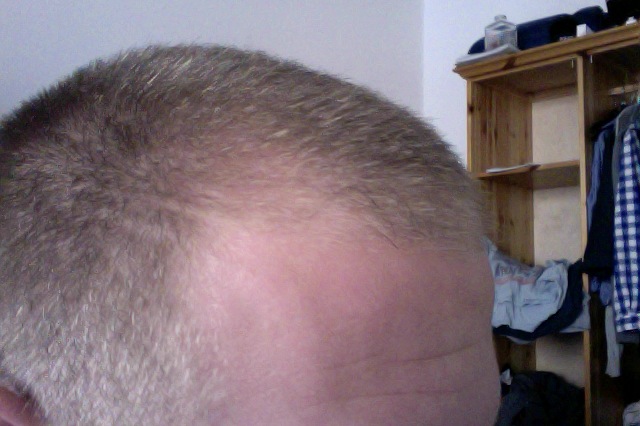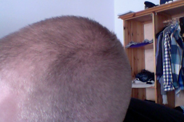 meine angeschlagene vorderen zwei ecken, nicht direkt ghe, aber die sich vermutlich dazu ausbilden wollen, sind ebenfalls mit flaum bzw. dünnen, farblosen haaren übersät. leider nur photobooth als möglichkeit, dies zu dokumentieren...man kann so gerade die "eigentliche" haarlinie, wäre da nicht die miese ausdünnung, erahnen.