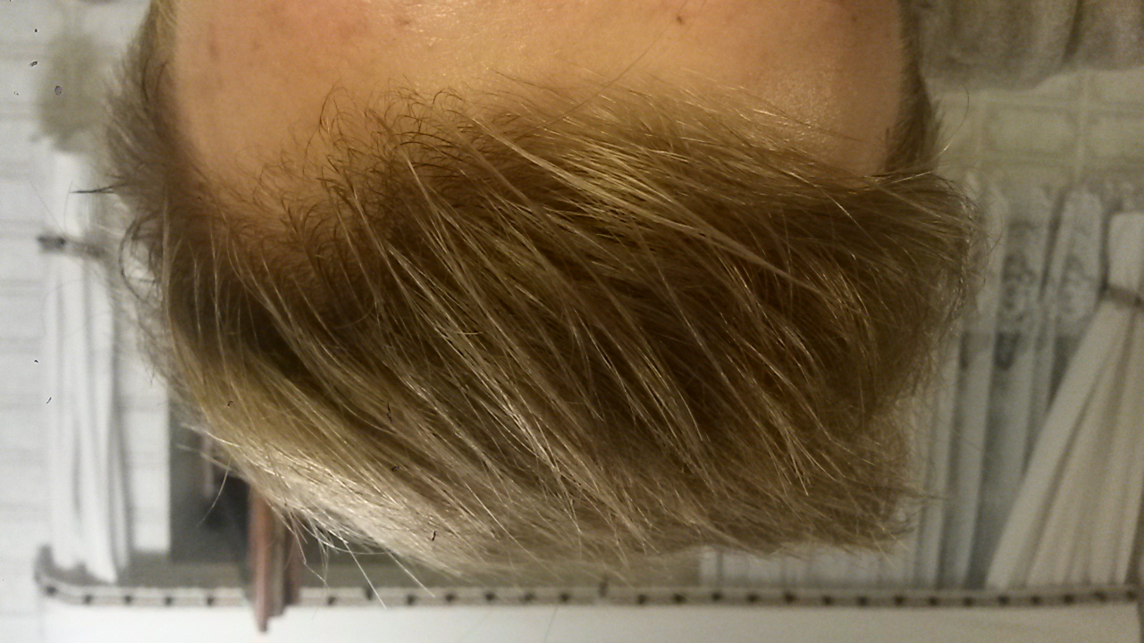 Jetzt hoffe ich, dass der diffus ausgedünnte Oberkopf wieder etwas an Dichte gewinnt, denn bei kleinsten WIndstoß, sieht man die Kophaut.