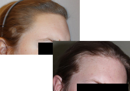 das ist sinnlos.... die Geheimratsecken sind nach wie vor vorhanden.. nur weiße Haare sollten sie verkleinern.. bei nassen oder etwas fettigen/verlegten haaren sieht das nach NW2 aus..