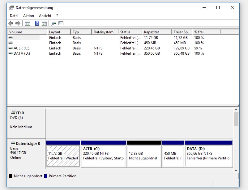 Mach doch mal ein Screenshot von der windows datenträgerverwaltung