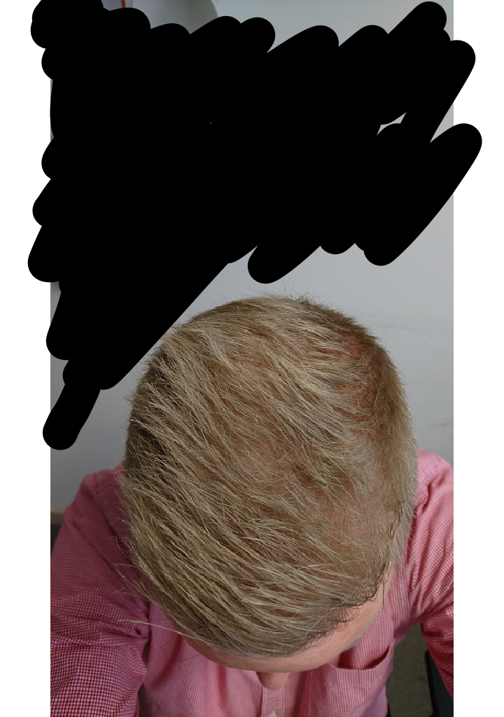 Er hatte ja in der Front ne HT, wo die dichte auch top ist. Der Bereich in der Mitte ist ja gerade der nicht transplantierte Bereich, wo die AGA scheinbar leicht weiterzugehen scheint.