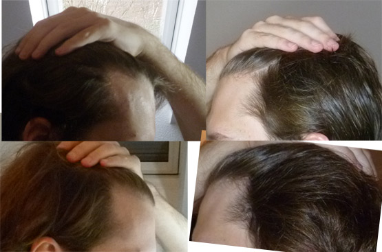 PS: Inzwischen mache ich wieder monatliche Abgleichungen mit dem Ausgangsbild. Ich habe nämlich das Gefühl, dass die Haare am Haaransatz, die einst farblos und kaum zu sehen waren, immer dunkler und dichter geworden sind. Will schauen, ob sich der Trend vortsetzt.