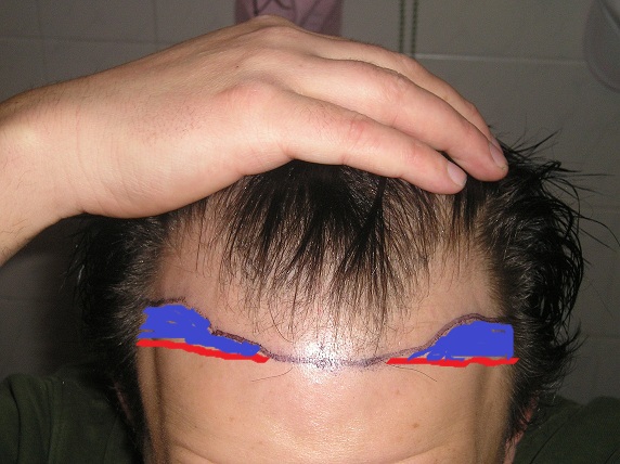 Deine ursprüngliche Haarlinie dürfte ungefähr so ausgesehen haben.