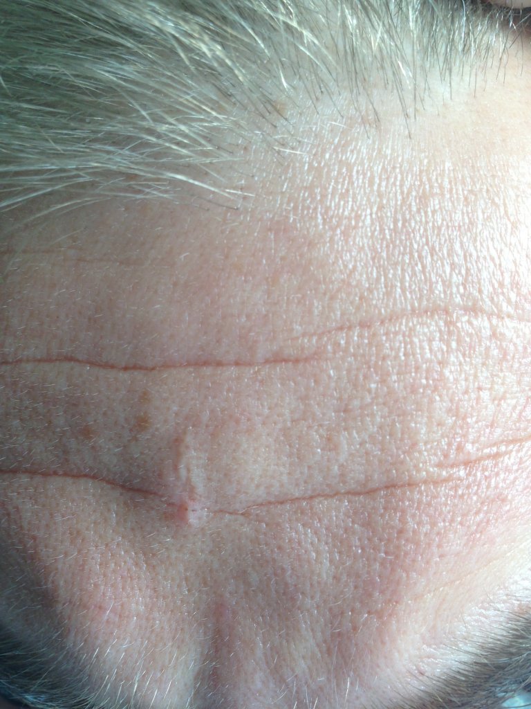 Diesen diffusen Haarausfall habe ich allerdings nur mittig über der Stirn wie auf dem Bild zu erkennen ist. Habe für das Foto, die Haare an dieser Stelle einmal auseinander gelegt.